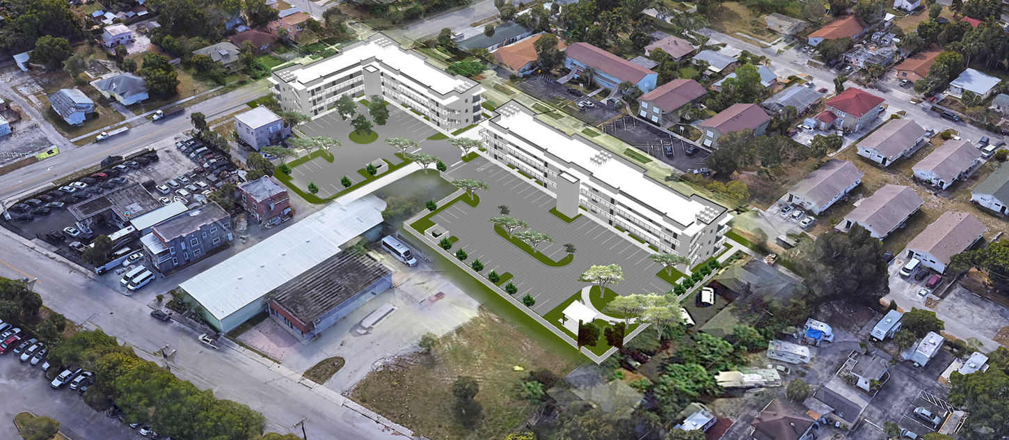 Situated in downtown West Palm Beach, this project consists of two three-story apartment buildings housing 25 one-bedroom and 26 two-bedroom apartments as well as amenities and common areas.