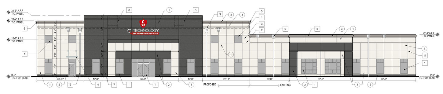 Located in Jupiter, Florida, this project is a 19,000 SF expansion of an existing 9,000 SF industrial facility for CV Technology, who are considered global leaders in explosion protection.The expanded facility now houses over 7,000 SF of offices and over 20,000 SF of warehouse space.